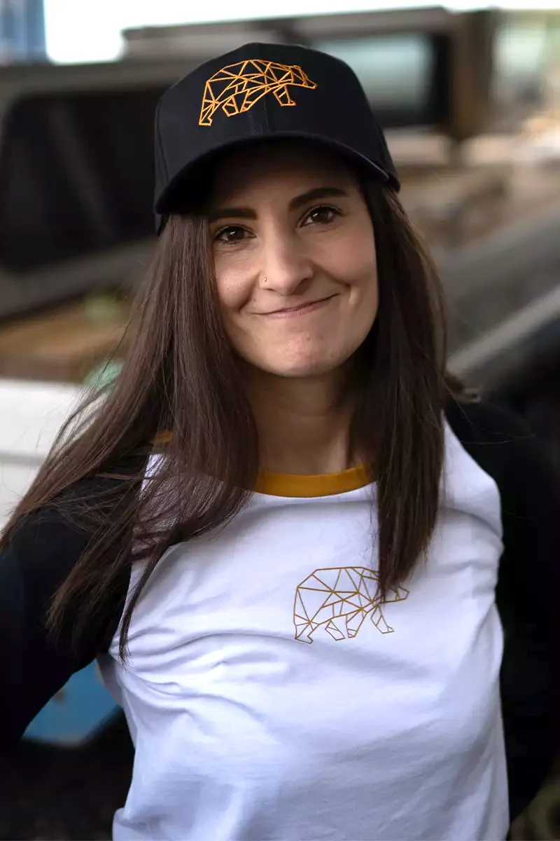 Dieses Produkt ist ein einfarbiges Basecap. Die Stirn der Cap ist wird durch einen großflächigen, bronzefarbenen Bären in Polygonoptik geziert. Rechts neben der Größenverstellung befindet sich ein weiterer kleinerer Stick mit FORSBERG Bär- und Schriftzug.